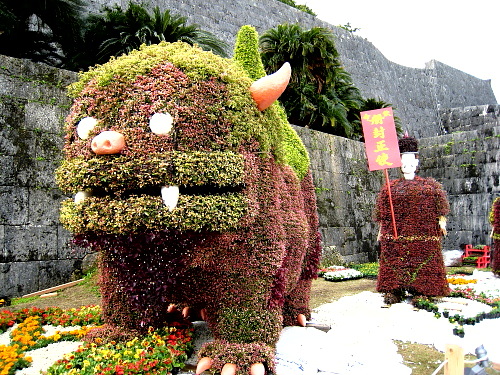 沖縄・首里城に飾られたシーサーと支那の冊封使の花人形