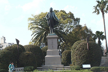 鹿児島市西千石町甲突川左岸緑地、高見橋際の大久保利通像